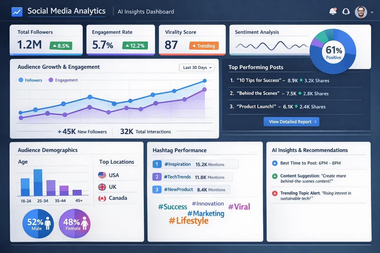 - Engagement rate and sentiment analysis